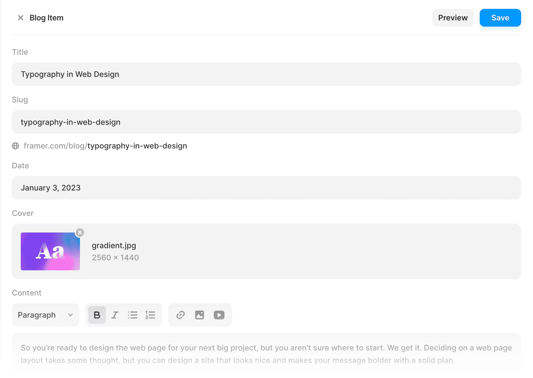 Gebruiksvriendelijke tools: Dankzij Framer kun je eenvoudig teksten, afbeeldingen en andere inhoud aanpassen.