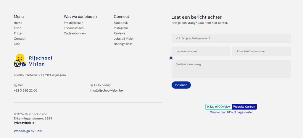 Bij Tibix ontwerpen we websites met duurzaamheid in gedachten. Dankzij Framer en bewuste keuzes streven we naar een zo laag mogelijke CO₂-uitstoot. We maken gebruik van tools zoals Website Carbon Calculator om te meten hoe milieuvriendelijk onze websites zijn.